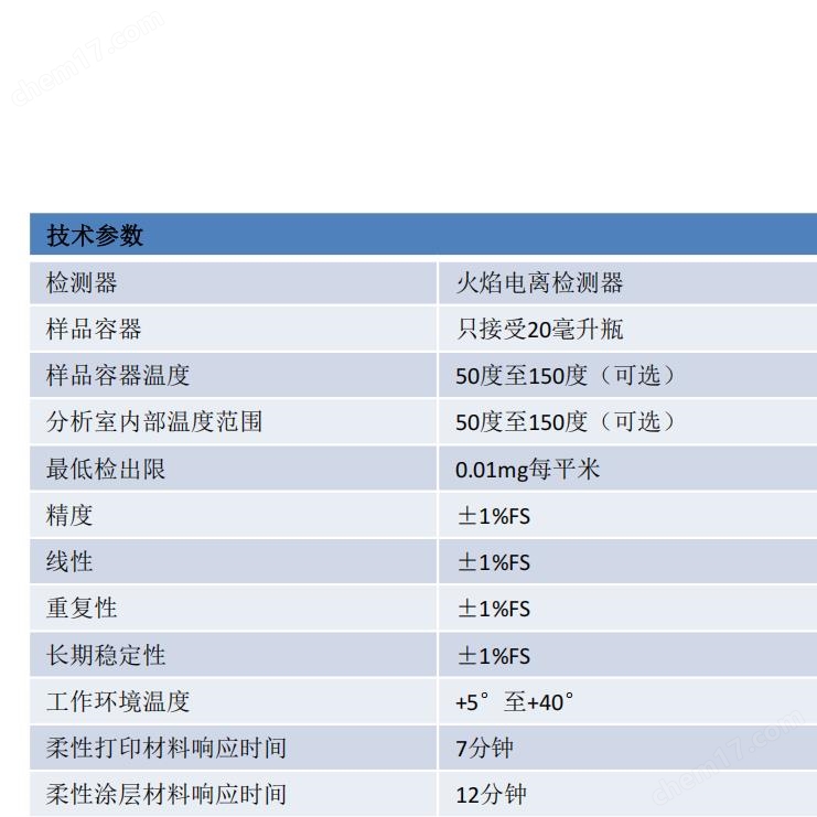 NIRA >這個(gè)儀器設(shè)備是組裝在一個(gè)金屬盒體內(nèi)的, 它可以放在桌子上,或者距離印刷機(jī)數(shù)米的工作臺(tái)上(需要的外部配套有電源,壓縮空氣,以及供應(yīng)氣相色譜儀的超純氫氣和超純空氣)儀器有以下部分組成: 毛細(xì)色譜柱50米乘以0.53 打印機(jī) 50個(gè)樣本容器(瓶)的成套設(shè)備 配件: 精密切割的100平方厘米樣本 樣品容器附加工具 用于校準(zhǔn)的標(biāo)準(zhǔn)物質(zhì) 標(biāo)準(zhǔn)物質(zhì)進(jìn)樣器(5μl) 可選配件: 空氣凈化器